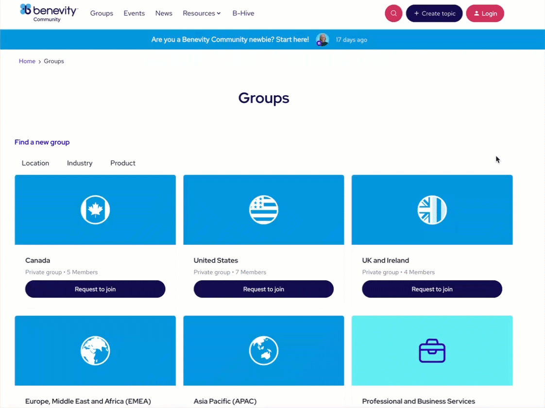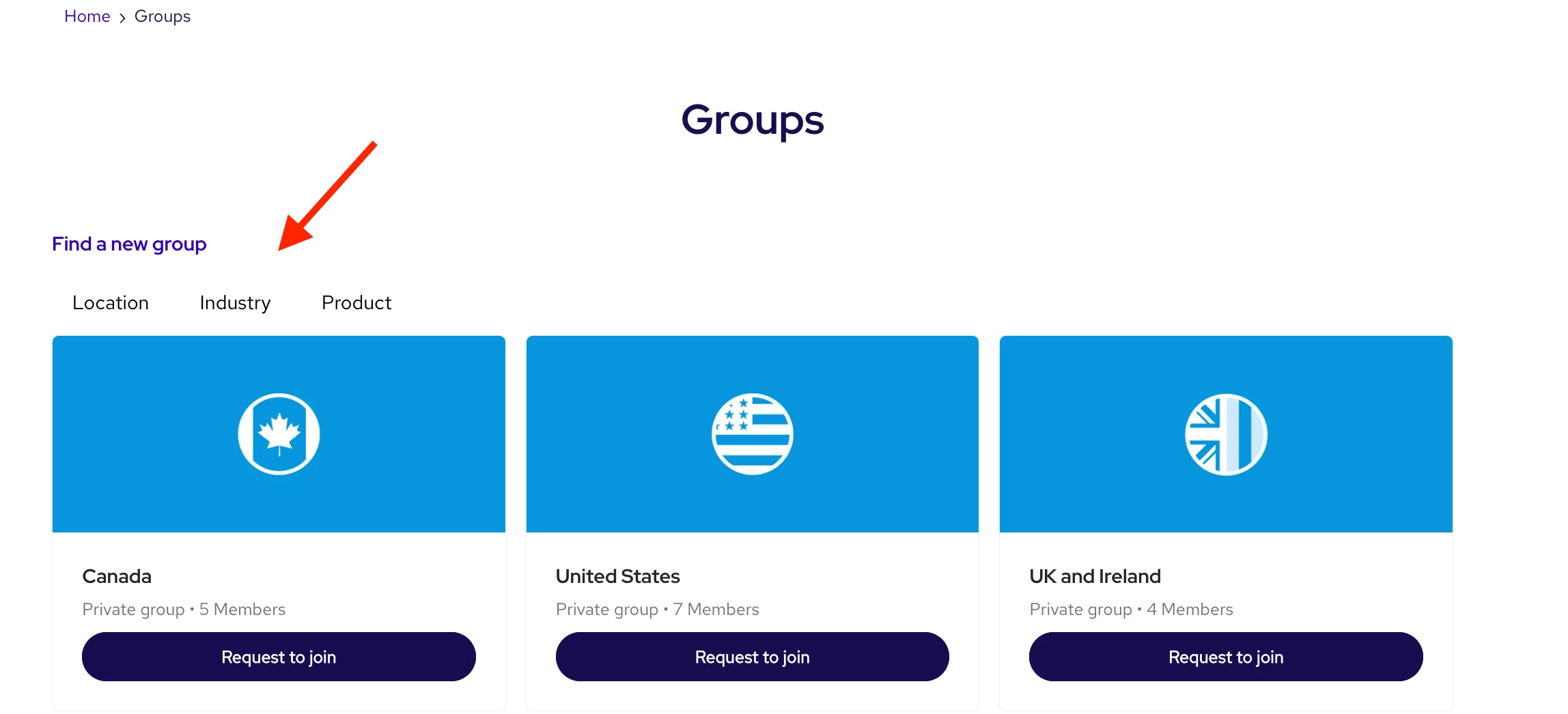 Head over to groups and filter by location, industry or product. When you’ve found a group you’re interested in joining, click “Request to join”. Once our Community team has reviewed your request, you’ll receive a welcome email.